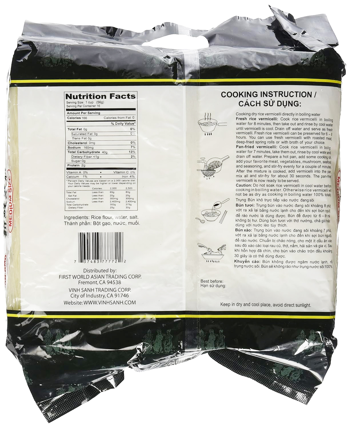 Light and delicate in texture, yet firm enough to hold sauces and broths, these thin rice noodles are perfect for creating traditional dishes like bún thịt nướng (grilled pork with vermicelli), bún chả, spring rolls, vermicelli bowls, stir-fried noodles, and soups like pho or bun rieu. They’re also a great substitute for glass noodles, cellophane noodles, or rice sticks in a variety of recipes.