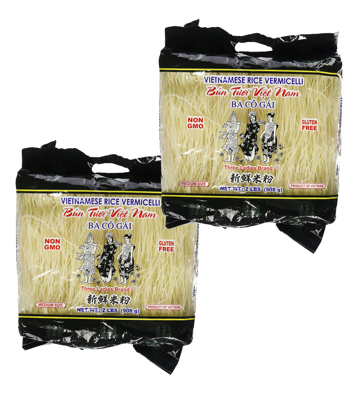 Bring the rich flavors of Southeast Asia to your kitchen with Three Ladies Brand Vietnamese Rice Vermicelli, 2lbs. This premium rice vermicelli noodle is a pantry essential for anyone who loves authentic Vietnamese, Thai, or Asian cuisine. Made from high-quality rice flour and water, these vermicelli rice noodles are naturally gluten-free, non-GMO, and contain no preservatives or artificial ingredients.